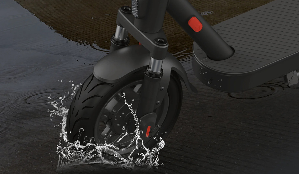 Koloběžka je odolná dle IPX5, takže se nemusíte obávat s ní vyrazit na cesty, například v dešti.