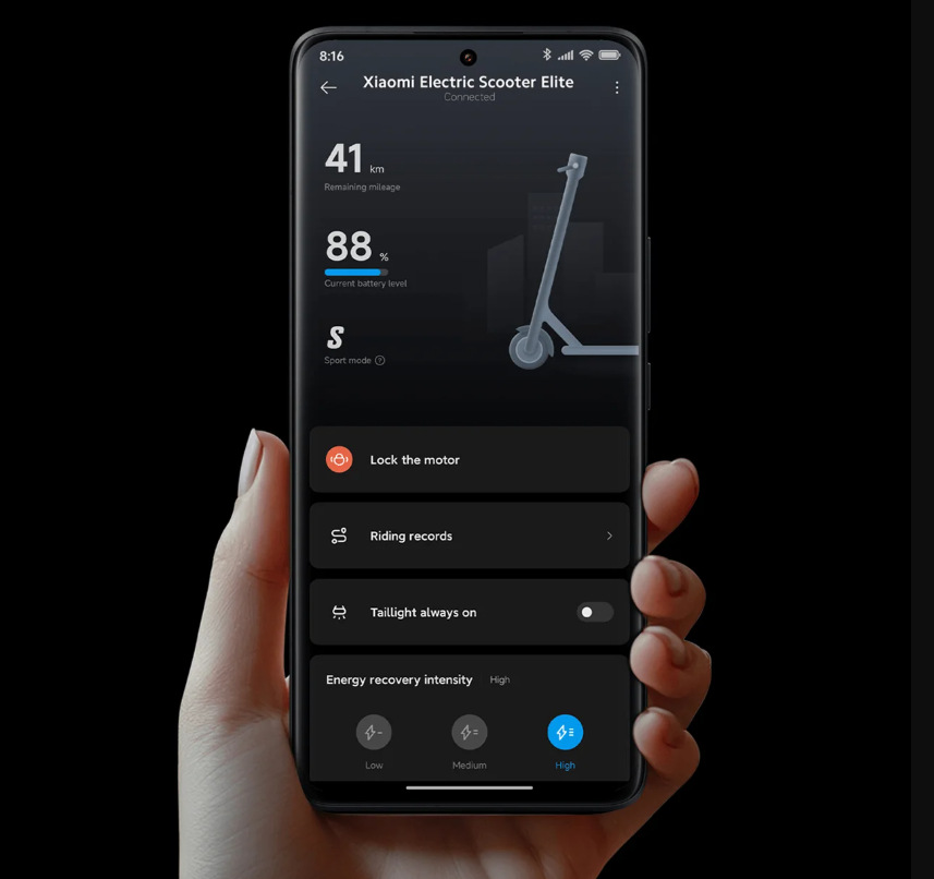 Dokonalý přehled o všem důležitém, jako je dojezd, ujetá vzdálenost, aktualizace firmwaru atp., získáte díky aplikaci Xiaomi Home kompatibilní s Androidem i iOS. Párování přitom probíhá skrze Bluetooth.
