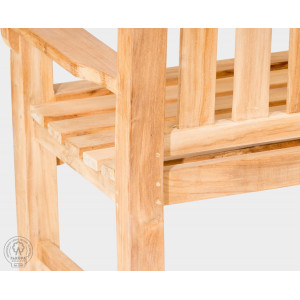 Ławka ogrodowa Aura w stylu angielskim wykonana jest z najwyższej jakości drewna tekowego z perfekcyjnym wykonaniem warsztatowym, od obijania po obróbkę powierzchni. Masywna konstrukcja teakowa, szerokie podłokietniki, które mogą służyć również jako schowek. Drewno teakowe ma wyjątkowo długą żywotność. Naszą ławkę drewnianą dostarczamy w naturalnej nieobrobionej wersji. Możliwość dostawy nawet naoliwionej.