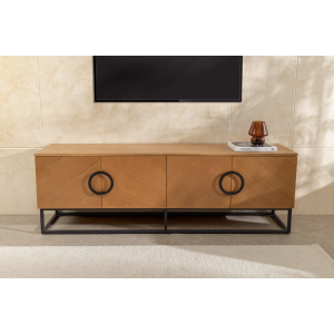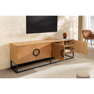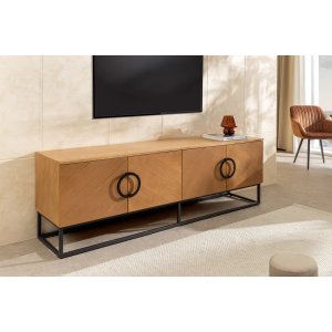 copy of Nízký TV stolek GRANDEZZA 180 cm, imitace ořechového dřeva, s černým kovovým rámem - detail