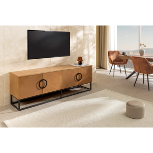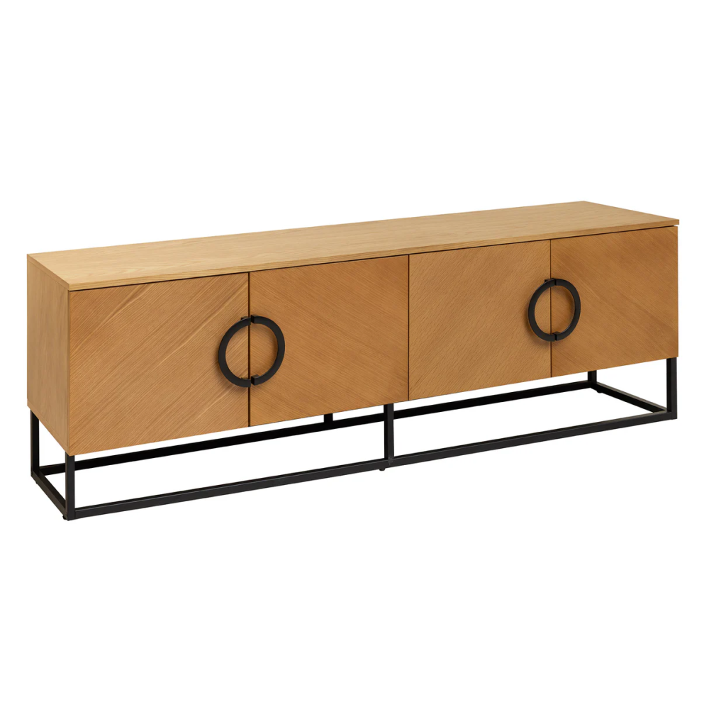 copy of Nízký TV stolek GRANDEZZA 180 cm, imitace ořechového dřeva, s černým kovovým rámem