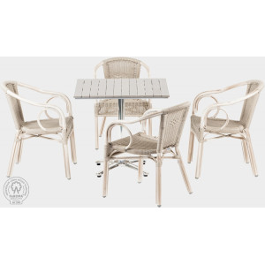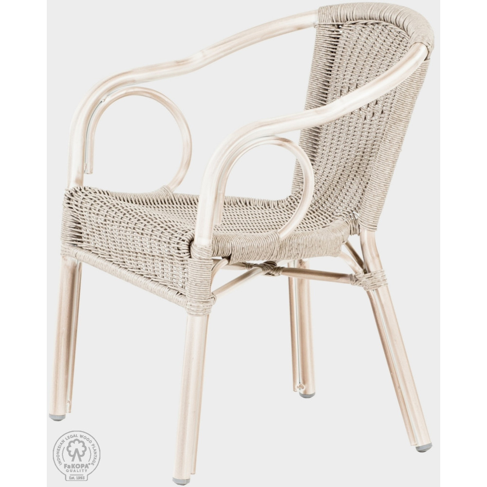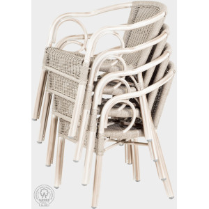 Fotel Gastro przeznaczony jest głównie do hoteli, restauracji, ale także do przestrzeni prywatnych. Sznurek wykonany jest z włókna VIRO o grubości 3 mm, które jest odporne na warunki atmosferyczne i promieniowanie UV. Konstrukcja wykonana jest z grubościennego aluminium 1,5 mm. Nogi zabezpieczone są przed zarysowaniami plastikowymi nakładkami. Wyróżnia się siłą i stabilnością. Krzesła są łatwe do układania w stos. Nośność do 150kg
