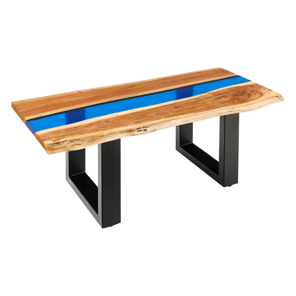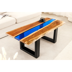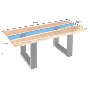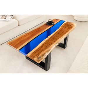 Konferenční stolek LIQUID 110 cm akáciové dřevo s modrým epoxidovým páskem