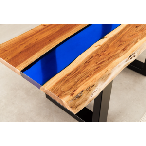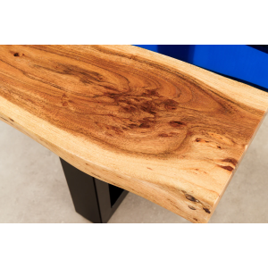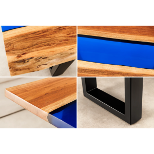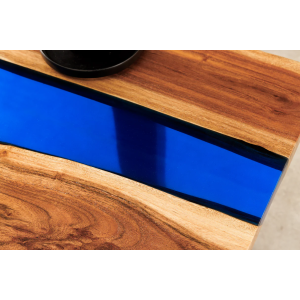 Konferenční stolek LIQUID 110 cm akáciové dřevo s modrým epoxidovým páskem - detail