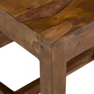 Drewniane krzesło z serii Colette czarująco łączy nowoczesny design mieszkalny z ciepłem wiejskiego stylu, tworząc charakterystyczny, zachęcający mebel do Twojej jadalni. Solidne palisander i przejrzysta, liniowa konstrukcja krzesła do jadalni sprawiają, że jest ono wyjątkowo stabilne, a zakrzywione oparcie gwarantuje wygodne siedzenie nawet podczas długich posiedzeń. Krzesło o wymiarach 45 x 110 x 45 cm (szer. x wys. x gł.) ma obszerne siedzisko, a jednocześnie nie zajmuje dużo miejsca.