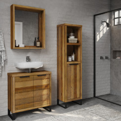 Seria Grenada dla miłośników nowoczesnych i pomysłowych mebli. Meble dostępne są w wersji z drewna akacjowego, dzikiego dębu lub w stylu rustykalnym z sosny z recyklingu. Kształty i powierzchnie są proste i nowoczesne i kontrastują z efektownym drewnem. Elementy metalowe są pomalowane na czarno i umiejętnie rozróżniają drewno. Nogi serii są opcjonalne. Możesz je zmontować lub pozostawić zawieszone meble. Drewno zostało matowo lakierowane, aby chronić je przed brudem i wilgocią, dzięki czemu powierzchnia jest aksamitnie miękka.