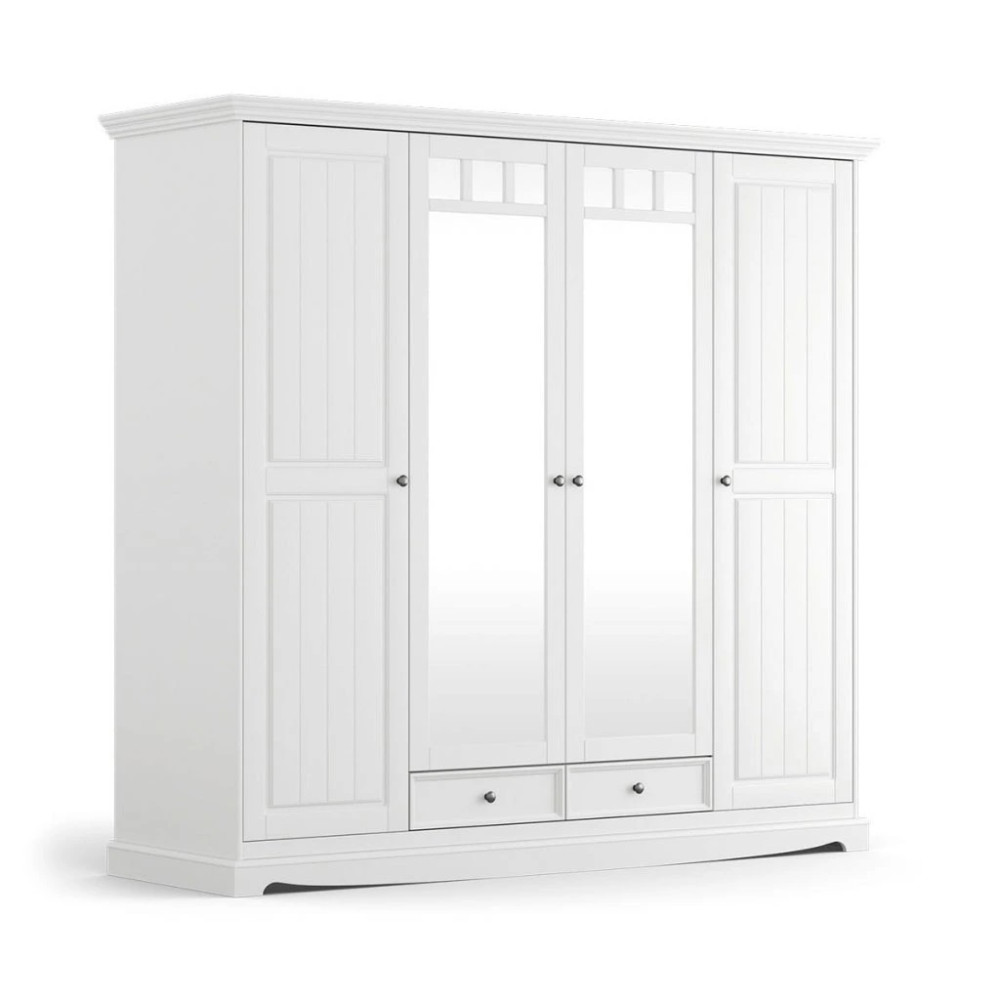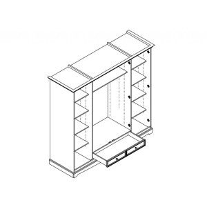 - 4 półki w prawej i lewej części, drążek na ubrania pośrodku