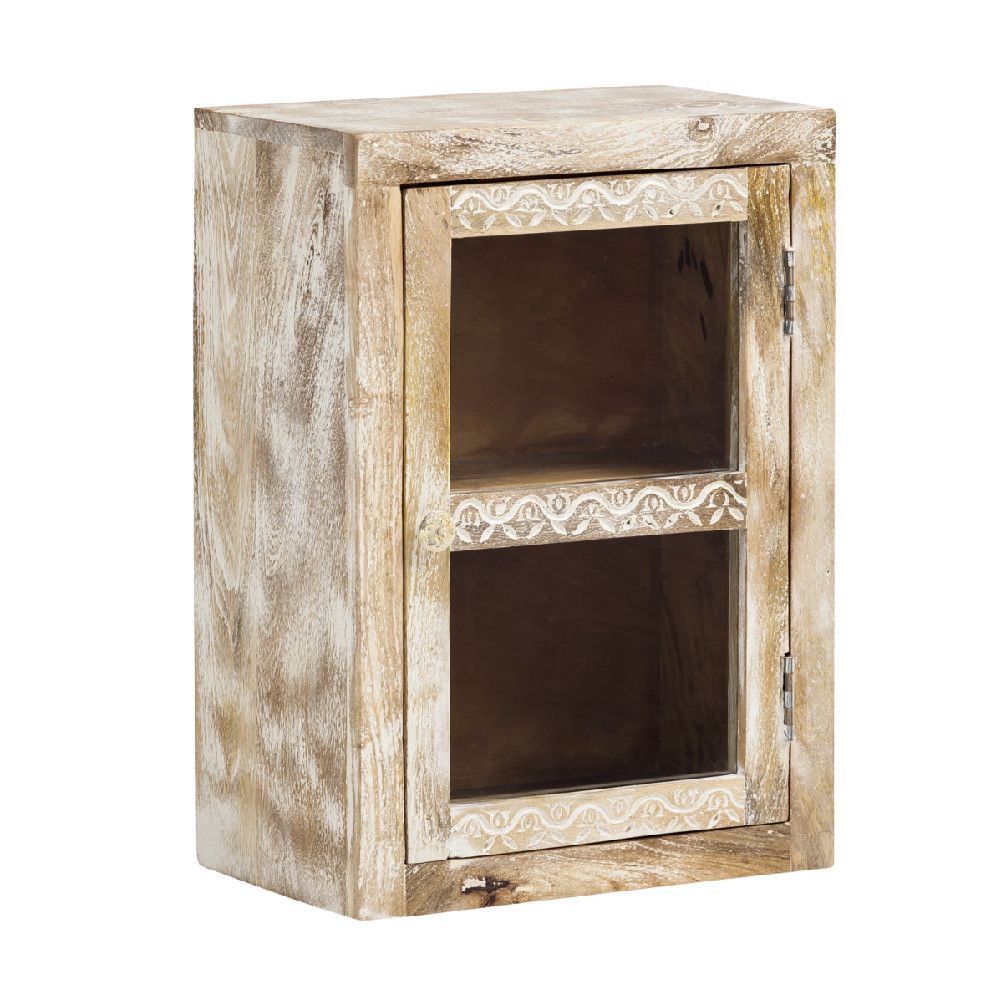 Seria łazienkowa Sicilia w rustykalnym stylu śródziemnomorskim. Wykonana jest z drewna mango, które dzięki białej patynowanej powierzchni ma charakterystyczny wygląd. Fronty są dokładnie rzeźbione i nadają tej serii subtelnego egzotycznego charakteru. Ponadto jasny odcień drewna doskonale komponuje się z białą patyną. Powierzchnia jest malowana i lakierowana, dzięki czemu jest odporna na wilgoć i plamy. Rustykalne meble łazienkowe, które są jednocześnie mocne i trwałe. Sycylia.